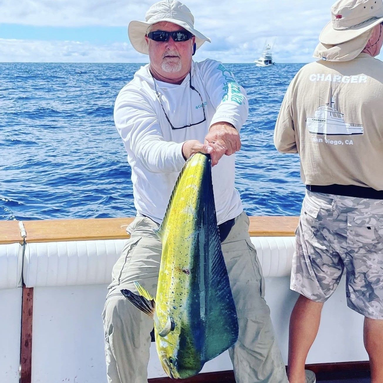 Dorado, also called mahi-mahi, bring incredible color and acrobatic fights to San Diego's offshore scene. These fish peak during the summer and early fall when warmer water moves up from Baja. They're aggressive feeders that often travel in schools, meaning when you find one, there are usually more around. Dorado love floating debris and kelp paddies, making them perfect targets for a multi-day trip that can cover lots of water. Their brilliant gold and green colors make them as beautiful as they are fun to catch.